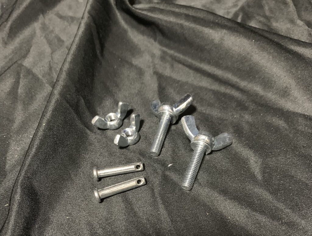 接合に使用しているのは、クレビスピン5㎜×25㎜ 蝶ボルトM6×25㎜ 蝶ナットM6×1.0㎜となっています。